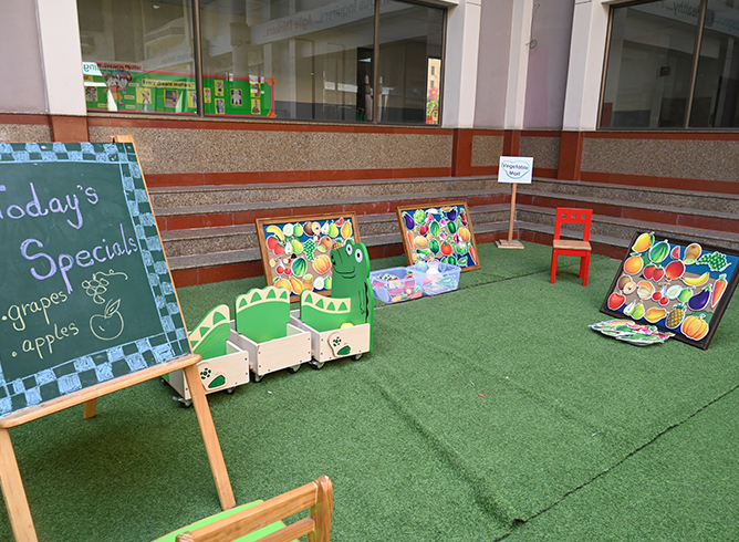 The mart featured thoughtfully created sections including a parking area, play zone, stationery shop, farmers market, and toy shop, making the entire experience realistic and exciting. From fresh produce at the farmers market to school supplies and toys, every corner encouraged participation, curiosity, and hands-on learning.