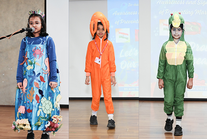 From August onwards, students actively participated in a variety of engaging learning experiences. The activities included movie screenings, Rescue Ranger notes, scrapbook making, sad and happy marine life expressions, collage making, a powerful skit spreading awareness about protecting and rescuing marine life, and a vibrant Marine Life Fashion Parade. Each activity enabled students to explore the theme in an age-appropriate, meaningful, and hands-on manner.